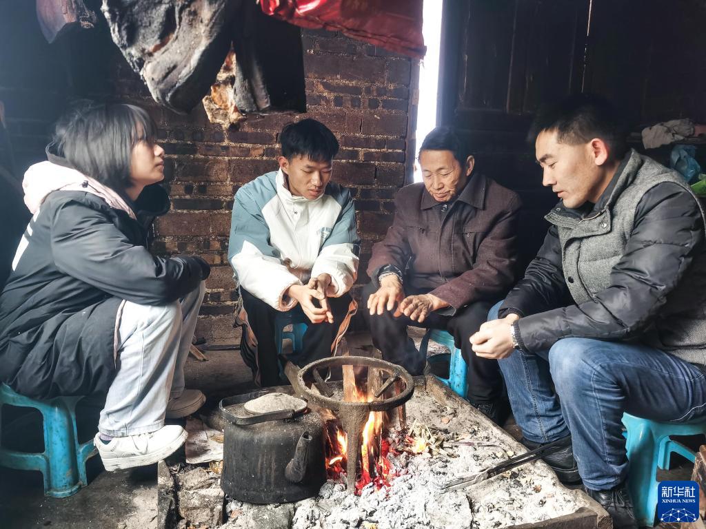 貴州省望謨縣實(shí)驗(yàn)高中黨總支副書(shū)記、副校長(zhǎng)劉秀祥(右一)在學(xué)生家中家訪(2022年2月1日攝)。新華社發(fā)