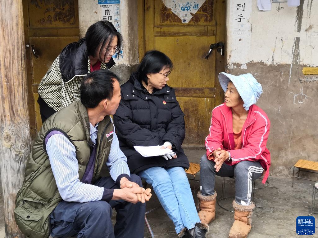 云南麗江華坪女子高級(jí)中學(xué)黨支部書記、校長張桂梅(右二)在家訪時(shí)與學(xué)生家長交談(2021年2月9日攝)。新華社發(fā)(王秀麗 攝)