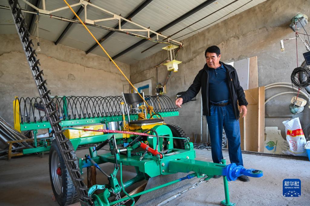 廷·巴特爾在庫房查看工具(9月8日攝)。新華社記者 劉磊 攝