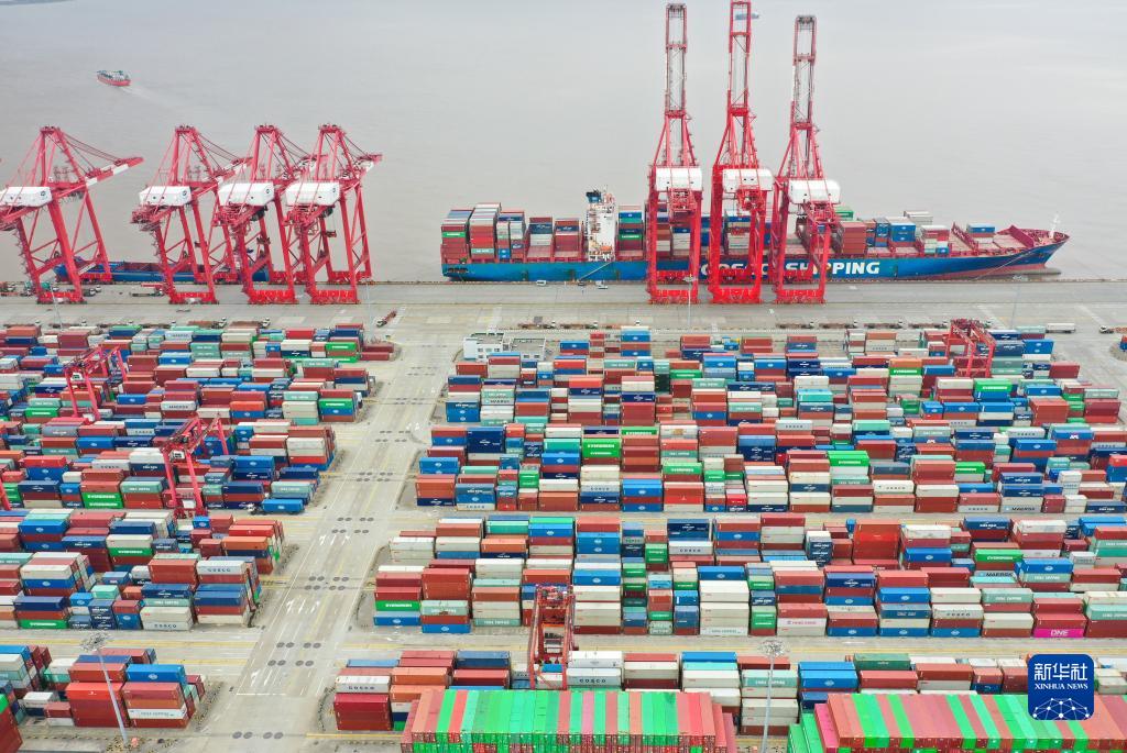 上海洋山港集裝箱碼頭(2022年4月15日攝,無(wú)人機(jī)照片)。新華社記者 丁汀 攝