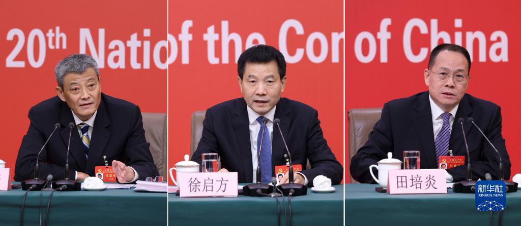 10月17日,中國共產(chǎn)黨第二十次全國代表大會新聞中心舉行記者招待會,請中央紀(jì)委副書記、國家監(jiān)委副主任肖培,中央組織部副部長徐啟方,中央政策研究室副主任田培炎介紹堅定不移全面從嚴(yán)治黨,深入推進(jìn)新時代黨的建設(shè)新的偉大工程有關(guān)情況,并回答記者提問(拼版照片)。