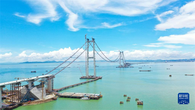 這是深中通道關鍵控制性工程伶仃洋大橋的建設現(xiàn)場(10月16日攝,無人機照片)。新華社發(fā)(張政 攝)