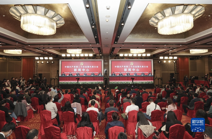 10月19日,中國(guó)共產(chǎn)黨第二十次全國(guó)代表大會(huì)新聞中心舉行記者招待會(huì)。中央政法委副秘書長(zhǎng)訚柏,最高人民法院黨組副書記、分管日常工作的副院長(zhǎng)、一級(jí)大法官賀榮,最高人民檢察院黨組副書記、分管日常工作的副檢察長(zhǎng)、一級(jí)大檢察官童建明,公安部黨委委員、副部長(zhǎng)、國(guó)家移民管理局黨組書記、局長(zhǎng)許甘露,司法部黨組成員、副部長(zhǎng)左力圍繞“堅(jiān)持以習(xí)近平法治思想為指引 努力建設(shè)更高水平的法治中國(guó)”主題與記者交流。