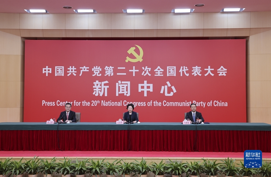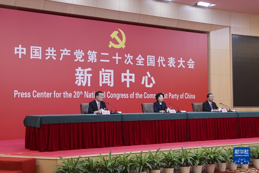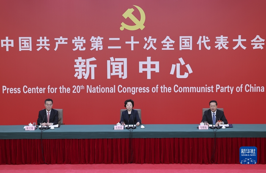 10月20日,中國(guó)共產(chǎn)黨第二十次全國(guó)代表大會(huì)新聞中心舉行記者招待會(huì)。中央對(duì)外聯(lián)絡(luò)部副部長(zhǎng)沈蓓莉,外交部黨委委員、副部長(zhǎng)馬朝旭圍繞“習(xí)近平外交思想指引中國(guó)特色大國(guó)外交開拓前行”主題與記者交流。 新華社記者 張玉薇 攝