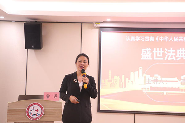 為充分認(rèn)識(shí)頒布實(shí)施民法典的重大意義,更好地推動(dòng)民法典實(shí)施,7月24日下午,由深圳市社會(huì)工作者黨委主辦,深圳市春雨社會(huì)工作服務(wù)社黨支部協(xié)辦的《民法典》專題黨課在福田CBD黨群中心開(kāi)展。黨課邀請(qǐng)了深圳市第六屆人大代表、深圳市人大常委會(huì)法律委員會(huì)委員、深圳市第十屆律師協(xié)會(huì)副會(huì)長(zhǎng)曾邁主講。深圳社工黨委書(shū)記王越主持,社工黨員、入黨積極分子等50余人參加。