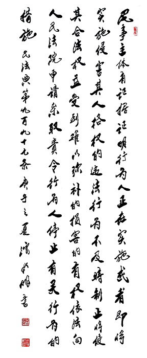 民法典第九百九十七條 民事主體有證據(jù)證明行為人正在實(shí)施或者即將實(shí)施侵害其人格權(quán)的違法行為,不及時(shí)制止將使其合法權(quán)益受到難以彌補(bǔ)的損害的,有權(quán)依法向人民法院申請(qǐng)采取責(zé)令行為人停止有關(guān)行為的措施。