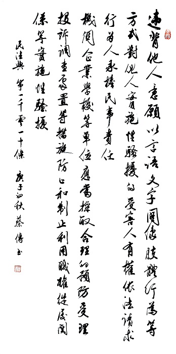 “書·法”活動(dòng)以書寫《中華人民共和國(guó)民法典》法條開筆,未來將對(duì)準(zhǔn)更多的法律。