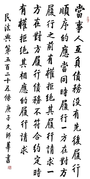 民法典第五百二十五條 當(dāng)事人互負(fù)債務(wù),沒有先后履行順序的,應(yīng)當(dāng)同時(shí)履行。一方在對方履行之前有權(quán)拒絕其履行請求。一方在對方履行債務(wù)不符合約定時(shí),有權(quán)拒絕其相應(yīng)的履行請求。