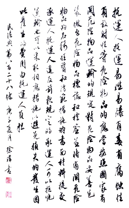 民法典第八百二十八條 托運人托運易燃、易爆、有毒、有腐蝕性、有放射性等危險物品的,應(yīng)當(dāng)按照國家有關(guān)危險物品運輸?shù)囊?guī)定對危險物品妥善包裝,做出危險物品標(biāo)志和標(biāo)簽,并將有關(guān)危險物品的名稱、性質(zhì)和防范措施的書面材料提交承運人。