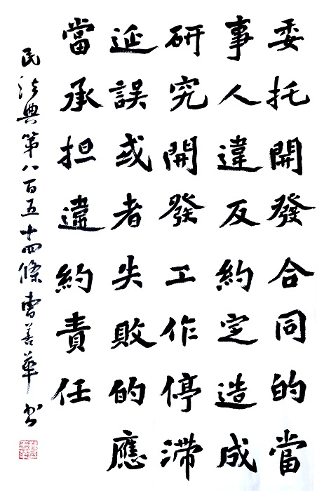 民法典第八百五十四條 委托開(kāi)發(fā)合同的當(dāng)事人違反約定造成研究開(kāi)發(fā)工作停滯、延誤或者失敗的,應(yīng)當(dāng)承擔(dān)違約責(zé)任。