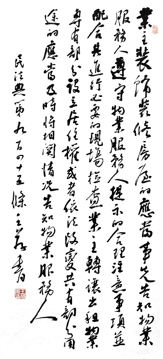 民法典第九百四十五條 業(yè)主裝飾裝修房屋的,應(yīng)當(dāng)事先告知物業(yè)服務(wù)人,遵守物業(yè)服務(wù)人提示的合理注意事項(xiàng),并配合其進(jìn)行必要的現(xiàn)場(chǎng)檢查。
