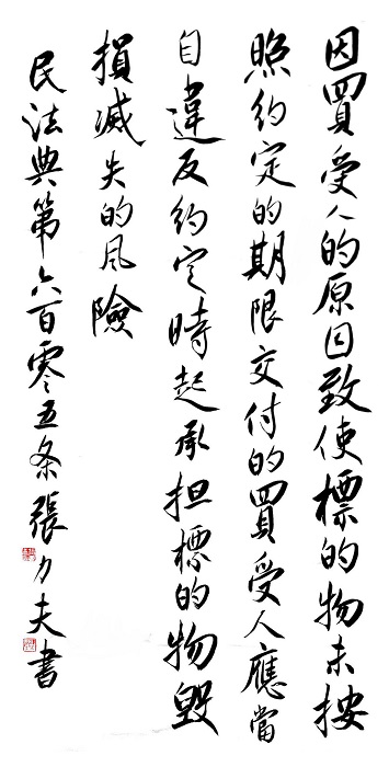 民法典第六百零五條 因買受人的原因致使標(biāo)的物未按照約定的期限交付的,買受人應(yīng)當(dāng)自違反約定時起承擔(dān)標(biāo)的物毀損、滅失的風(fēng)險。