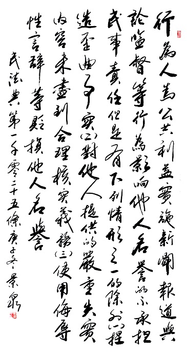 “書·法”活動以書寫《中華人民共和國民法典》法條開筆,未來將對準(zhǔn)更多的法律。