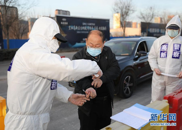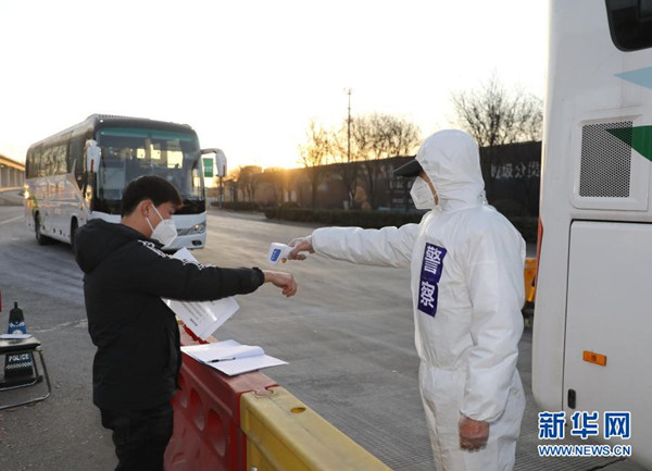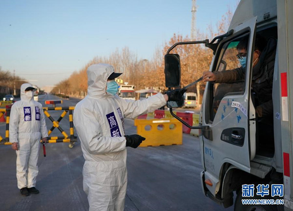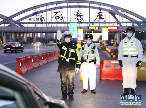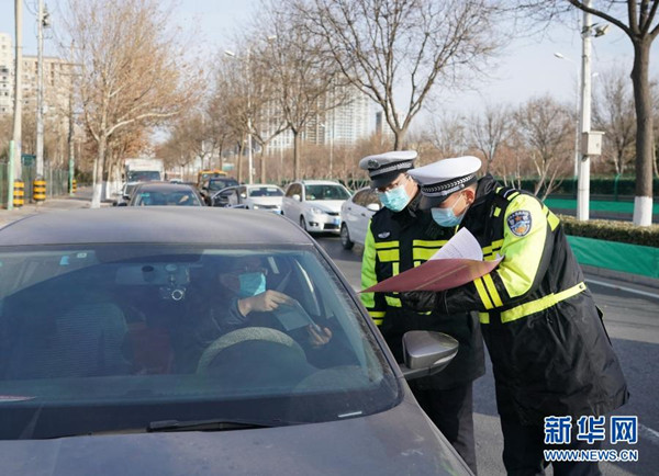 1月10日,石家莊市公安局裕華區(qū)交通警察大隊(duì)民警檢查外出車(chē)倆和人員的證件?!?/span>