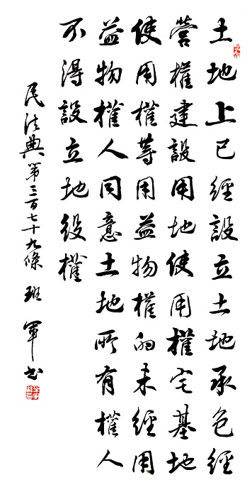 民法典第三百七十九條 土地上已經(jīng)設(shè)立土地承包經(jīng)營(yíng)權(quán)、建設(shè)用地使用權(quán)、宅基地使用權(quán)等用益物權(quán)的,未經(jīng)用益物權(quán)人同意,土地所有權(quán)人不得設(shè)立地役權(quán)。