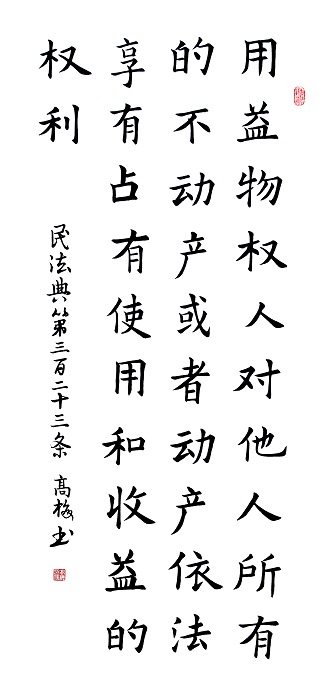 民法典第三百二十三條 用益物權人對他人所有的不動產(chǎn)或者動產(chǎn),依法享有占有、使用和收益的權利。