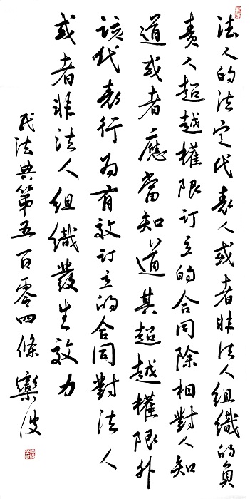 民法典第五百零四條 法人的法定代表人或者非法人組織的負責人超越權(quán)限訂立的合同,除相對人知道或者應當知道其超越權(quán)限外,該代表行為有效,訂立的合同對法人或者非法人組織發(fā)生效力。