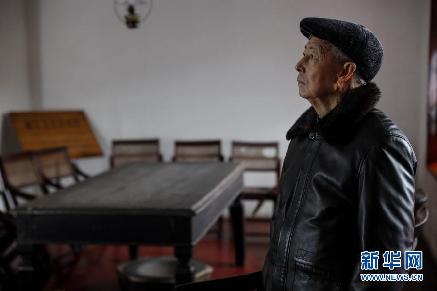 1月27日,83歲的遵義會議紀念館原副館長田興詠在遵義會議召開的長方桌前口述歷史。新華社記者 歐東衢 攝