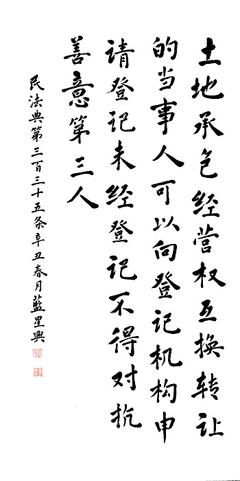 民法典第三百三十五條 土地承包經(jīng)營權(quán)互換、轉(zhuǎn)讓的,當(dāng)事人可以向登記機(jī)構(gòu)申請(qǐng)登記;未經(jīng)登記,不得對(duì)抗善意第三人。
