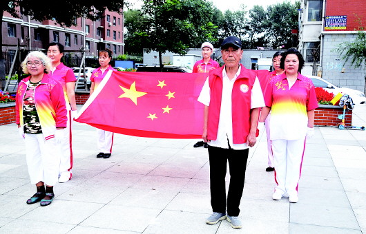 “大家雖然住進(jìn)了樓房,但小區(qū)環(huán)境不好,人員素質(zhì)也不高,怎么能把大家的積極性調(diào)動(dòng)起來呢?”張秀英說,2012年1月,她和老伴梁金華想到了升國旗,于是找來一根細(xì)長的木桿豎立在小區(qū)空地上,并買來一面國旗,在一個(gè)星期一的早上,兩人一邊唱國歌一邊將國旗升起。