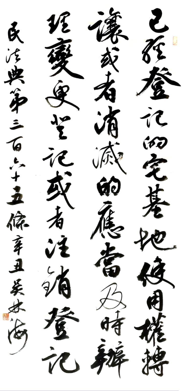 “書·法”活動(dòng)以書寫《中華人民共和國(guó)民法典》法條開筆,未來(lái)將對(duì)準(zhǔn)更多的法律。