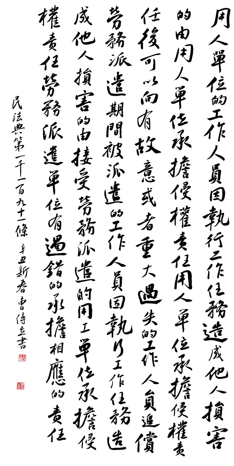 “書·法”活動(dòng)以書寫《中華人民共和國(guó)民法典》法條開筆,未來(lái)將對(duì)準(zhǔn)更多的法律。
