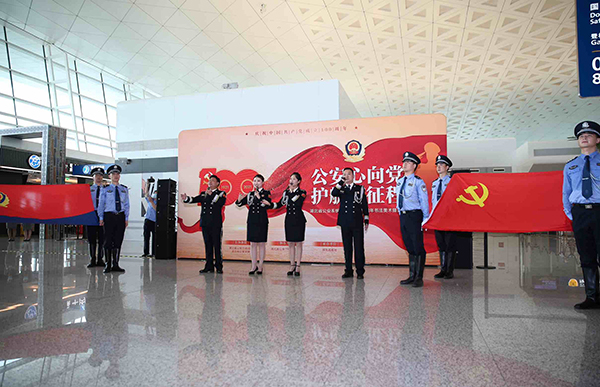 丹青翰墨歌盛世,時光留影展忠誠。6月30日上午,由湖北省公安廳主辦的“公安心向黨 護(hù)航新征程——全省公安系統(tǒng)慶祝建黨100周年書法美術(shù)攝影展”在天河機(jī)場候機(jī)廳拉開帷幕,百余幅展現(xiàn)歷年來湖北公安工作重大成果及公安民警愛黨愛民、傾情奉獻(xiàn)精神風(fēng)貌的優(yōu)秀作品整齊陳列,吸引眾多旅客駐足觀看。