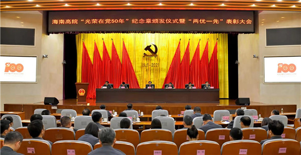 6月30日上午,海南省高院隆重召開(kāi)“光榮在黨50年”紀(jì)念章頒發(fā)儀式暨“兩優(yōu)一先”表彰大會(huì)。省高院黨組書記、院長(zhǎng)陳鳳超出席會(huì)議并講話。