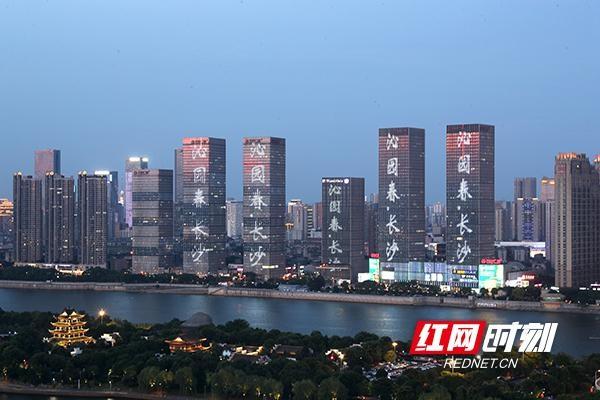 7月12日,長沙市,大會主題燈光秀。