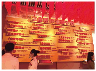 在這面革命精神展墻上,“革命精神光耀千秋 紅色基因代代相傳”紅色大字,向來往的參觀者展示著人民軍隊(duì)永不磨滅的紅色精神。