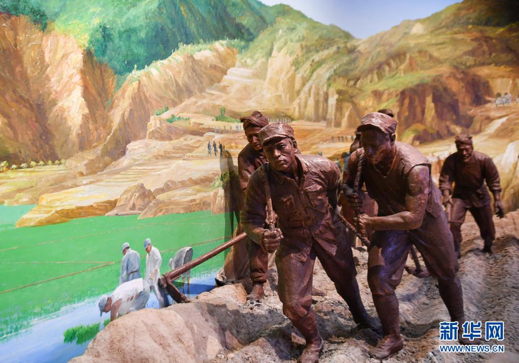 南泥灣大生產(chǎn)紀(jì)念館內(nèi)的雕塑作品(7月22日攝)。新華社記者 張博文 攝