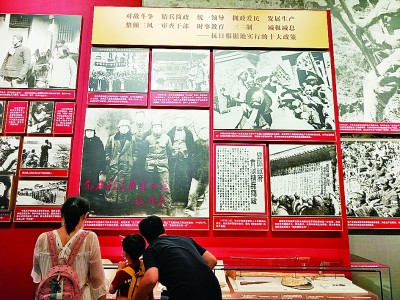 延安時(shí)期,黨在領(lǐng)導(dǎo)邊區(qū)法治建設(shè)的過程中,進(jìn)行了歷史性探索?!蛾兏蕦庍厖^(qū)施政綱領(lǐng)》成為抗戰(zhàn)時(shí)期邊區(qū)的根本大法?!包S克功案件”的審判,彰顯了從嚴(yán)治黨、從嚴(yán)治軍的決心?!榜R錫五審判方式”的確立,為新民主主義司法制度注入了新鮮血液,也為新中國司法制度的建立提供了有益經(jīng)驗(yàn)。圖為觀眾在參觀抗日根據(jù)地建設(shè)有關(guān)情況。