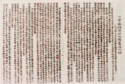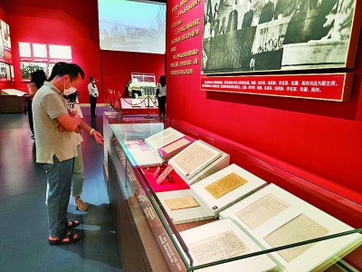 《中華蘇維埃共和國憲法大綱》是第一部由勞動(dòng)人民制定的根本法,是共產(chǎn)黨領(lǐng)導(dǎo)人民反帝反封建的偉大綱領(lǐng),為以后制定民主憲法提供了寶貴經(jīng)驗(yàn)。圖為展覽中的《中華蘇維埃共和國憲法大綱》文本。