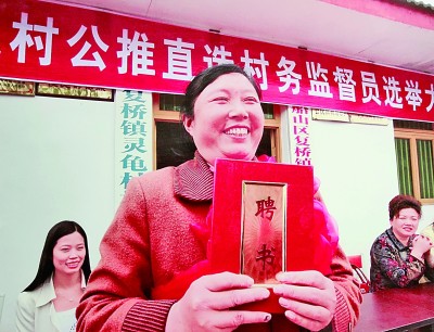 2010年3月,修改后的全國人大和地方各級(jí)人大選舉法規(guī)定,城鄉(xiāng)按相同人口比例選舉人大代表,基層群眾的民主意識(shí)得到進(jìn)一步增強(qiáng)。圖為四川省遂寧市復(fù)橋鎮(zhèn)靈龜村舉行公推直選村務(wù)監(jiān)督員選舉活動(dòng)。