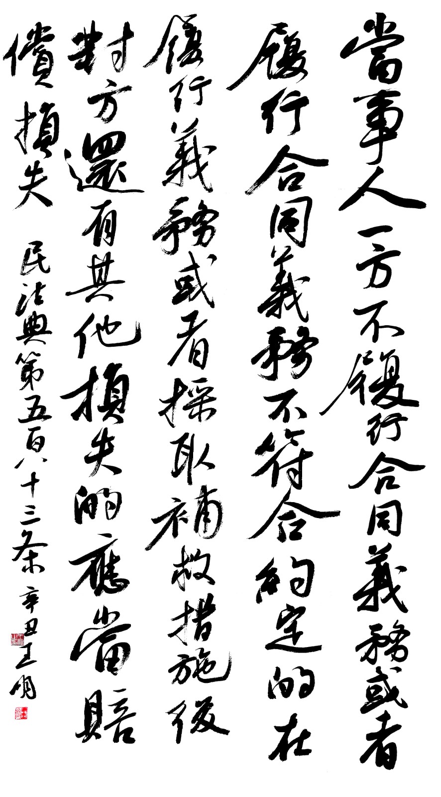 民法典第五百八十三條 當(dāng)事人一方不履行合同義務(wù)或者履行合同義務(wù)不符合約定的,在履行義務(wù)或者采取補救措施后,對方還有其他損失的,應(yīng)當(dāng)賠償損失。