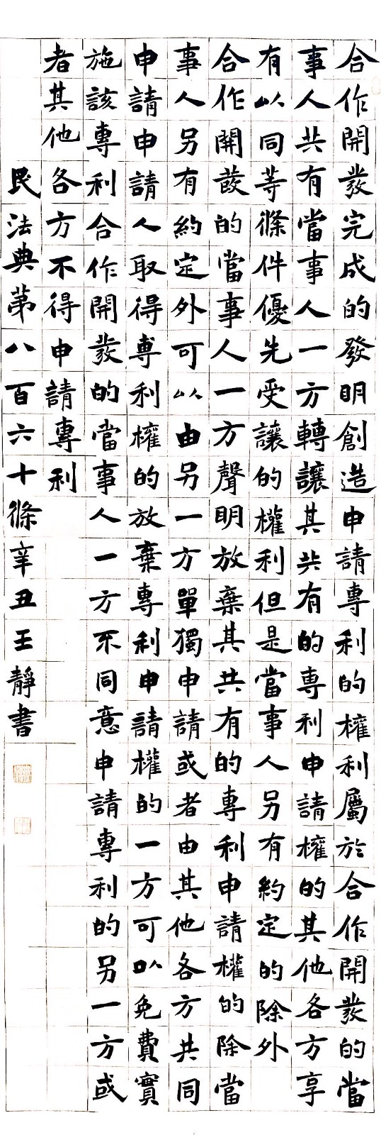 民法典第八百六十條 合作開(kāi)發(fā)完成的發(fā)明創(chuàng)造,申請(qǐng)專利的權(quán)利屬于合作開(kāi)發(fā)的當(dāng)事人共有;當(dāng)事人一方轉(zhuǎn)讓其共有的專利申請(qǐng)權(quán)的,其他各方享有以同等條件優(yōu)先受讓的權(quán)利。但是,當(dāng)事人另有約定的除外。