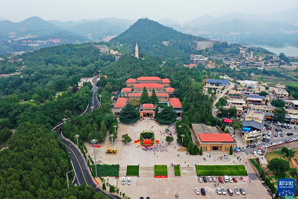 這是河北省平山縣西柏坡紀(jì)念館外景(6月13日攝,無人機(jī)照片)。 新華社記者 牟宇 攝