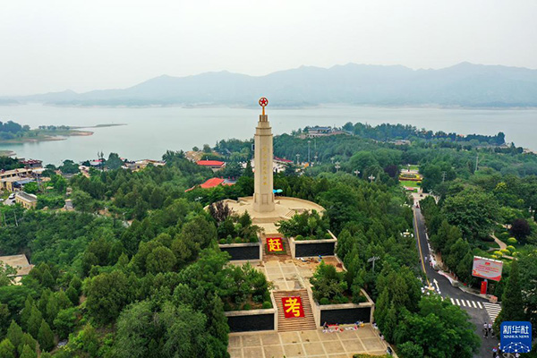 這是6月13日拍攝的河北省平山縣西柏坡紀(jì)念塔(無人機(jī)照片)。 新華社記者 牟宇 攝
