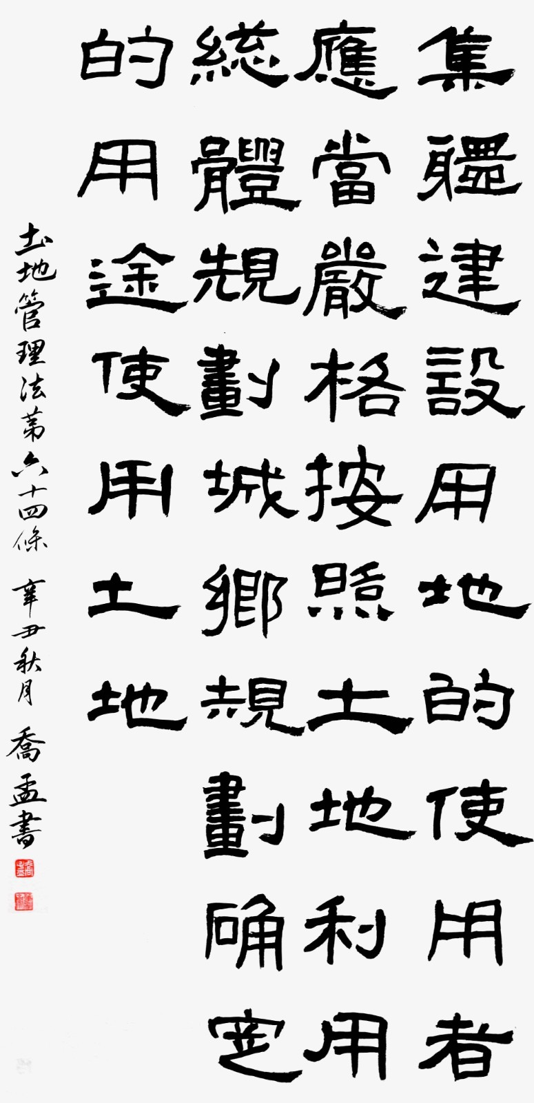 繼1600余位書法家參與書寫《中華人民共和國民法典》全部1260條法條之后,法治日報社聯(lián)合自然資源部法規(guī)司、自然資源部書畫研究會和北京昌平書法家協(xié)會,將筆端對準(zhǔn)土地管理“一法一條例”,即《中華人民共和國土地管理法》和《中華人民共和國土地管理法實施條例》。