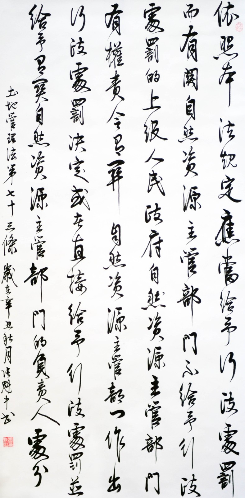 繼1600余位書法家參與書寫《中華人民共和國民法典》全部1260條法條之后,法治日報社聯(lián)合自然資源部法規(guī)司、自然資源部書畫研究會和北京昌平書法家協(xié)會,將筆端對準(zhǔn)土地管理“一法一條例”,即《中華人民共和國土地管理法》和《中華人民共和國土地管理法實施條例》。