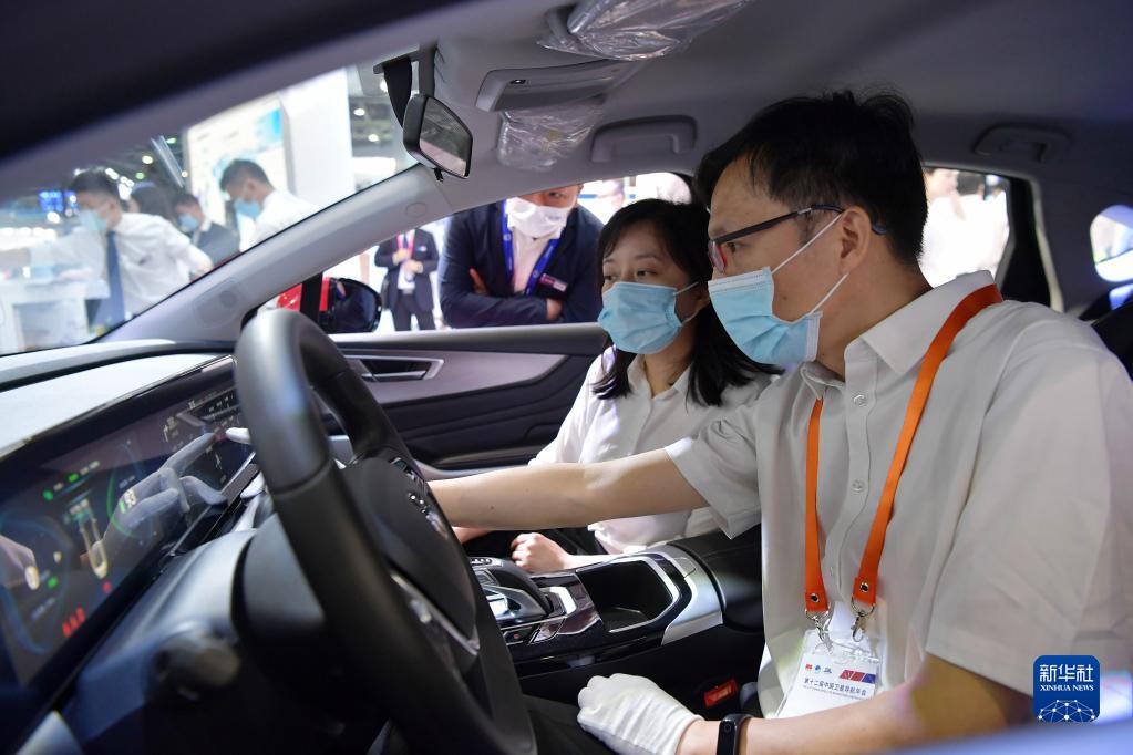 觀眾在第十二屆中國衛(wèi)星導(dǎo)航成就博覽會上參觀體驗基于北斗衛(wèi)星導(dǎo)航系統(tǒng)應(yīng)用的電動車(5月26日攝)。新華社記者 彭昭之 攝