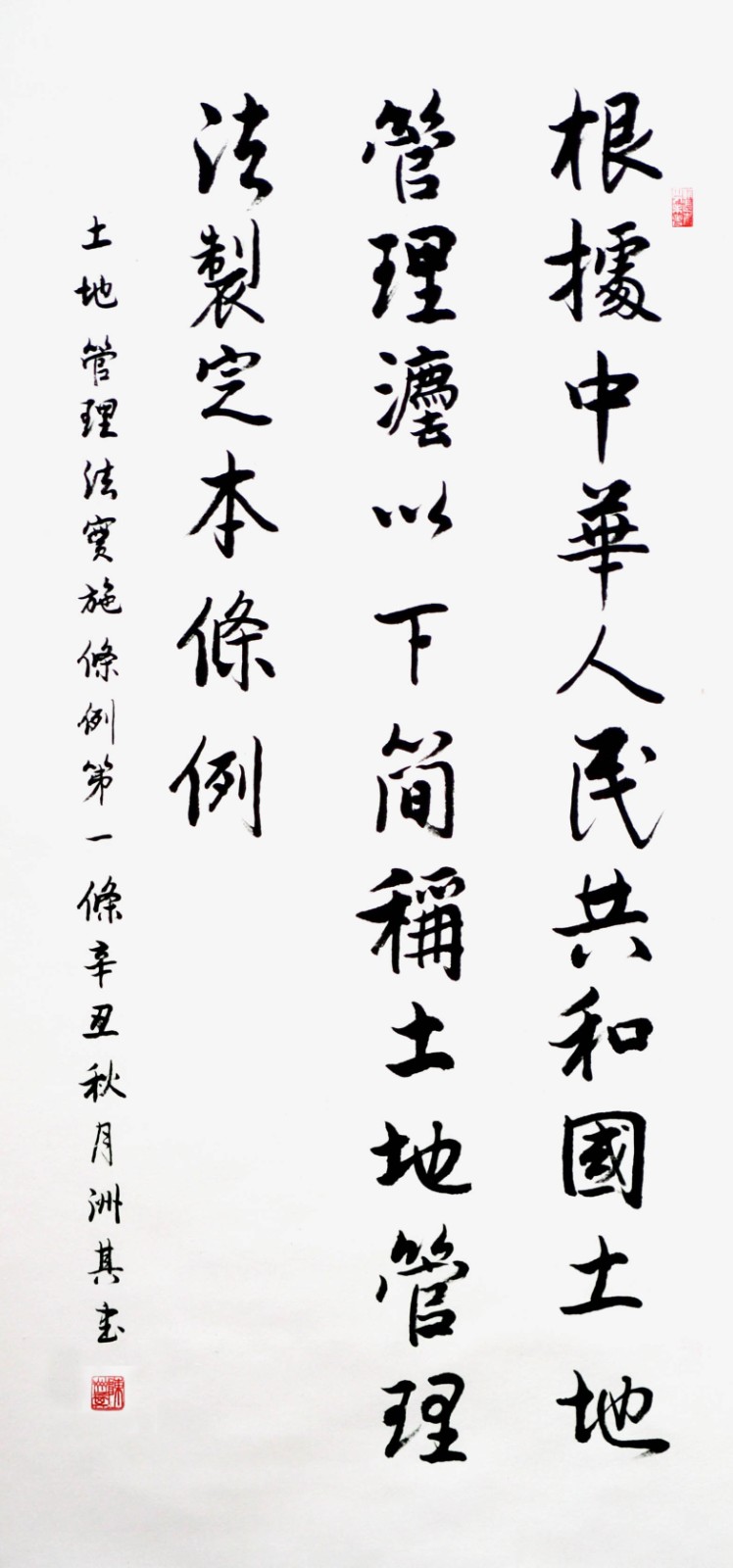 繼1600余位書法家參與書寫《中華人民共和國民法典》全部1260條法條之后,法治日報社聯(lián)合自然資源部法規(guī)司、自然資源部書畫研究會和北京昌平書法家協(xié)會,將筆端對準土地管理“一法一條例”,即《中華人民共和國土地管理法》和《中華人民共和國土地管理法實施條例》。
