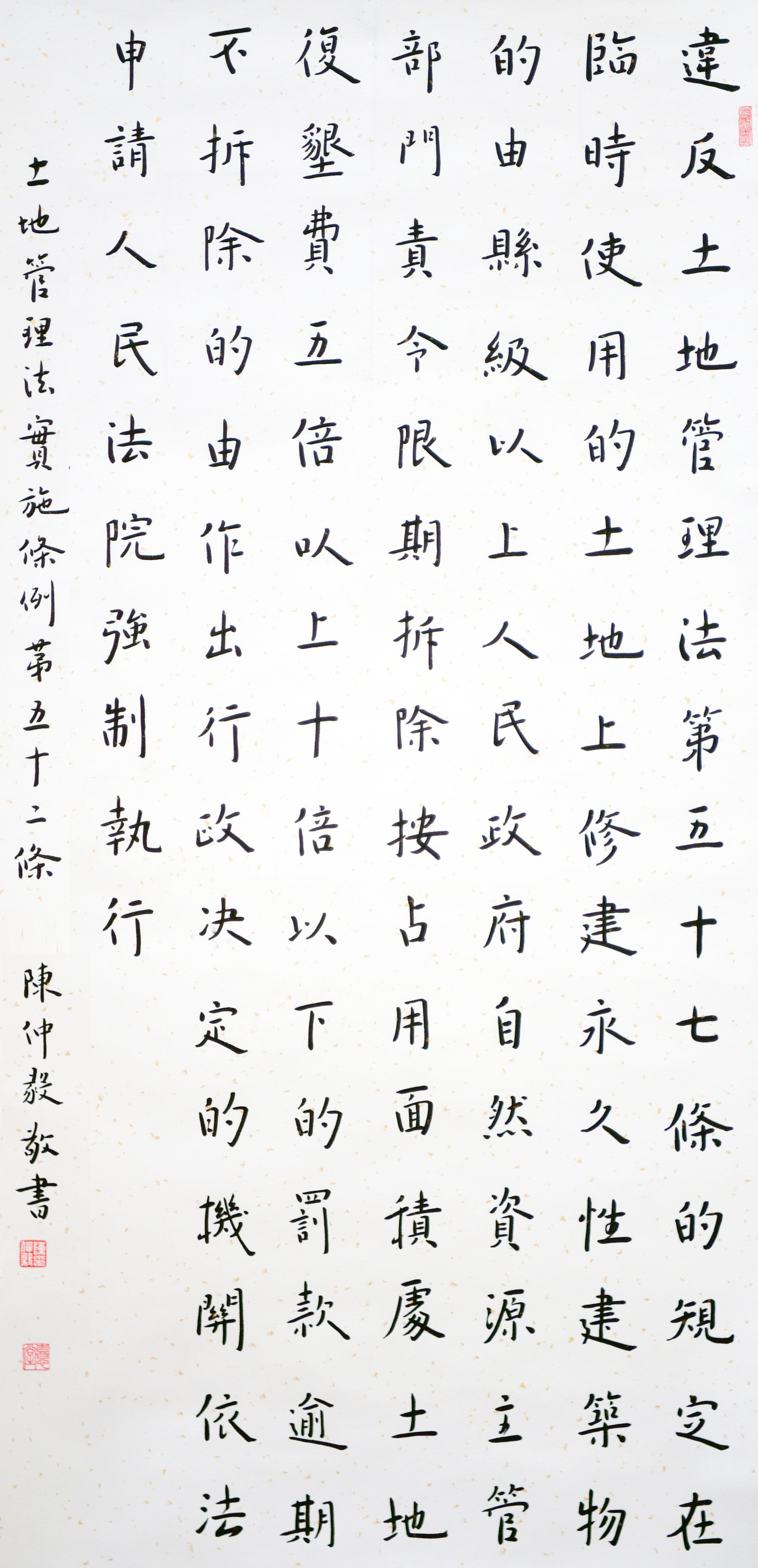 繼1600余位書(shū)法家參與書(shū)寫(xiě)《中華人民共和國(guó)民法典》全部1260條法條之后,法治日?qǐng)?bào)社聯(lián)合自然資源部法規(guī)司、自然資源部書(shū)畫(huà)研究會(huì)和北京昌平書(shū)法家協(xié)會(huì),將筆端對(duì)準(zhǔn)土地管理“一法一條例”,即《中華人民共和國(guó)土地管理法》和《中華人民共和國(guó)土地管理法實(shí)施條例》。