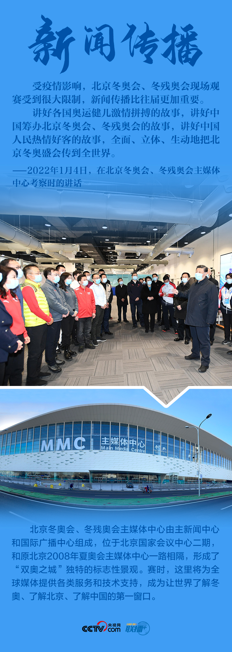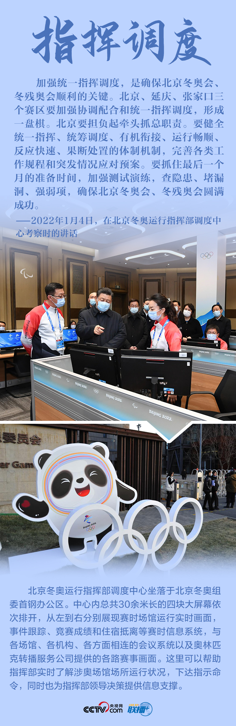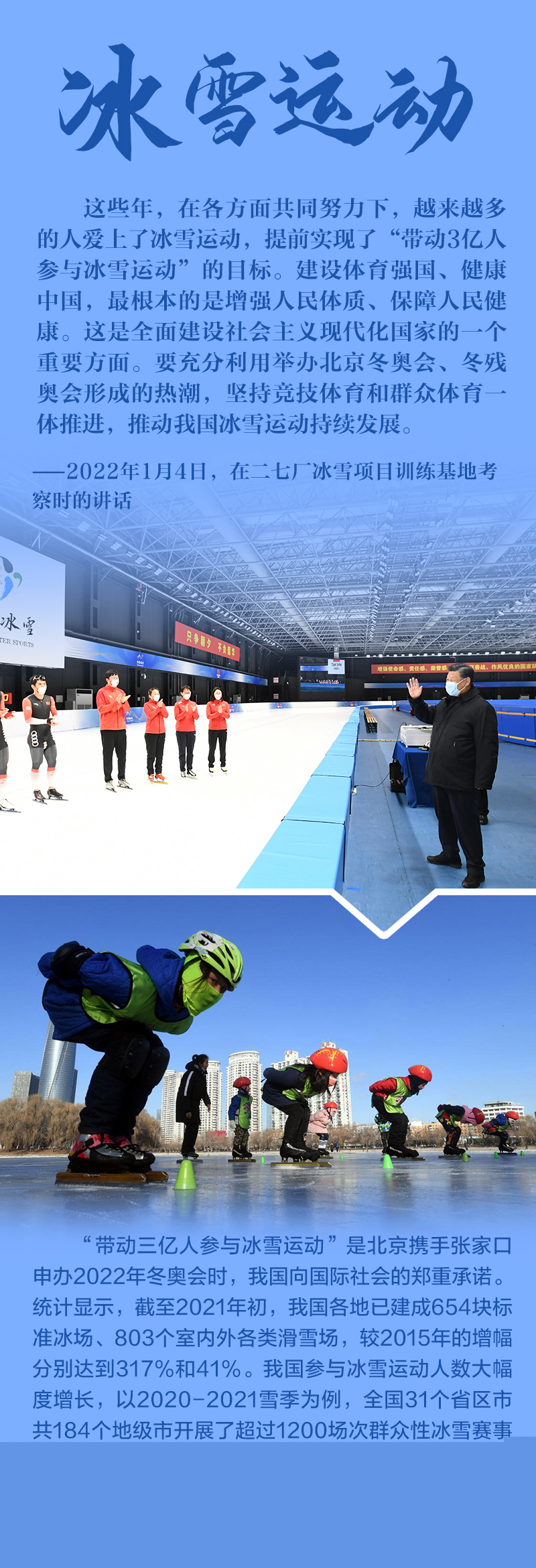 “今天是元旦后上班第一天,我來專題調(diào)研北京冬奧會、冬殘奧會籌備工作,主要是來給大家鼓勁加油?!?月4日,北京冬奧會開幕倒計時一個月之際,習(xí)近平總書記在北京深入體育場館、媒體中心、訓(xùn)練基地等,實(shí)地了解2022年冬奧會、冬殘奧會籌辦備賽情況。