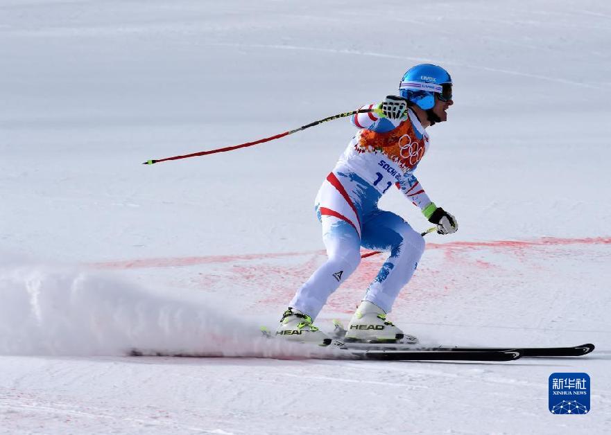 2014年2月9日,馬蒂亞斯·邁爾在索契冬奧會(huì)高山滑雪男子滑降比賽中。新華社記者 李鋼 攝
