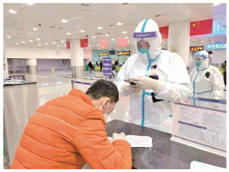 “手套、鞋套、面屏、連接處封死……”1月25日9點(diǎn)半,遼寧大連周水子出入境邊防檢查站執(zhí)勤四隊教導(dǎo)員常亮嘴里一邊嘟囔著,一邊穿上防護(hù)服。由于接下來的幾個小時需要穿防護(hù)服執(zhí)勤,他把早飯和午飯合在了一起吃,盡量少喝水,然后從專用通道走出隔離酒店,乘車前往執(zhí)勤現(xiàn)場,第四次參加閉環(huán)勤務(wù)。