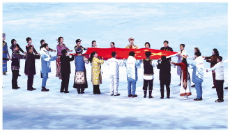 圖為“馬蘭花兒童合唱團”用希臘語在第二十四屆冬季奧林匹克運動會開幕式上歌唱。 新華社記者 曹燦 攝