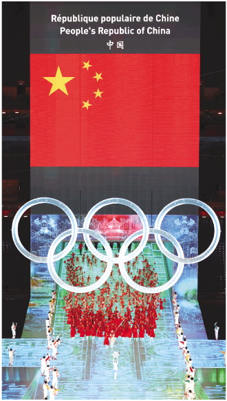 2月4日晚,第二十四屆冬季奧林匹克運動會開幕式在北京國家體育場舉行。圖為中國代表團在開幕式上入場。 新華社記者 楊磊 攝