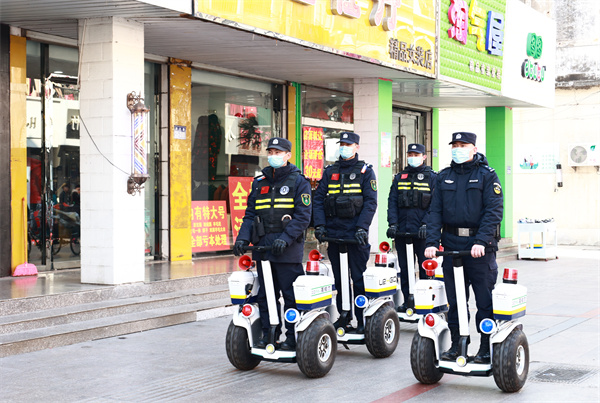 圖為濱江路警務站巡邏隊在步行街巡邏。