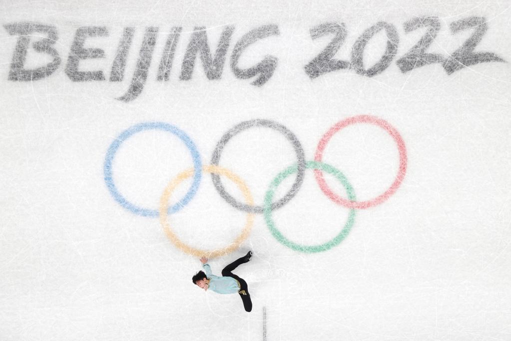 2月8日,中國選手金博洋在北京冬奧會花樣滑冰男子單人滑短節(jié)目比賽中。新華社記者鞠煥宗攝